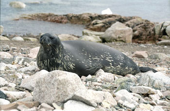 They are silver/grey in colour and they have short dense fur that protects them from water temperatures as low as -2°C (28°F). Their body is large and bulky, and they have a small head and flippers. They have a short, blunt muzzle and a few short whiskers.